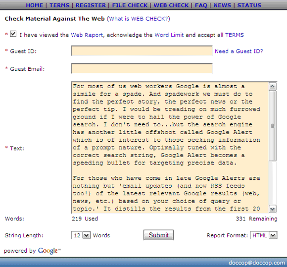 Com o acesso facilitado à informação na Internet e no contexto educativo, nem todos os nossos alunos são originais nos trabalhos pedidos. Na minha opinião, é importante que desde cedo, logo que aprendam a escrever, seja abordado esta temática na perspetiva de incentivá-los a referirem todas as fontes do qual a informação foi recolhida. O famoso "copy paste" torna o processo mais fácil para os alunos mas que na realidade, com as ferramentas disponíveis também na Internet, ajudam os professores a combaterem o denominado plágio. E com o DOC Cop é possível criar relatórios muito minuciosos que reúne todas as informações necessárias que ajudam a comprovar se existe ou não plágio. Este é um programa que está disponível na Internet e que permite também carregar dois documentos e fazer a comparação para detetar se há plágio.
