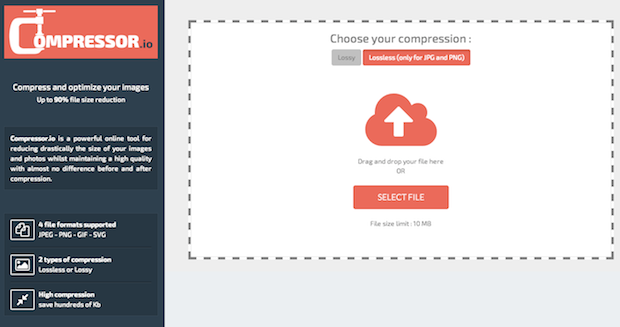 Compressor.io é uma boa alternativa para quem quer tratar do tamanho das suas fotografias. Disponível na Internet, com esta ferramenta é possível reduzir o tamanho das imagens e das fotografias, mantendo a qualidade original. Compressor.io é grátis e suporta diversos formatos de imagens (jpeg, png, gif e svg).